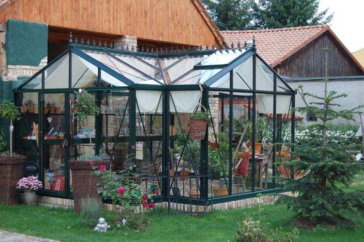 The Junior Orangerie is an appealing ‘‘T” shaped English greenhouse that boasts a unique style and provides an optimum growing environment for flowers, specialty plants, fruits, and vegetables. A choice of two sizes makes it easy to fit this beautiful greenhouse into any backyard to complement any landscape. The greenhouse comes with 2 automatic roof openers, a roof gutter system, and a sliding glass door. This is truly a must-see, must-have gardener’s dream. What makes this hobby greenhouse right for growing food for your family? It is easy to assemble, strong, and designed with starting multiple crops in mind.