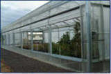 - Interior/ exterior curtain systems that are designed to be installed inside greenhouses with roofs that retract or open