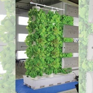 8' Vertical Commercial Aeroponic System | 220 | Five vertical grow tubes | 100 Gallons | 342 | 29-1/2"W x 96"L x 115"H. | 8'H with 44 grow sites per tube |